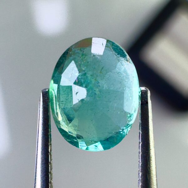 This natural emerald comes from Zambia, a region renowned for its high-quality gemstones. It is distinguished by its light blue-green color and beautiful transparency, with small inclusions. It is ideal for creating fine jewelry or adding to a collection.